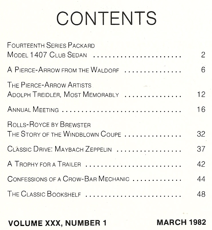 Reviews THE CLASSIC CAR 1982 MAR - PACKARD 1407, PIERCE WALDORF,R-R BREWSTER, ZEPPELIN