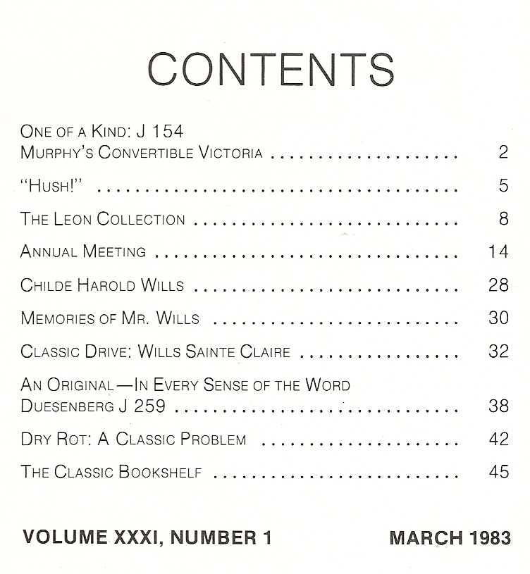 Reviews THE CLASSIC CAR 1983 MAR - DUSENBERG J259, 154 MURPHY VICTORIA, WILLS St CLAIRE