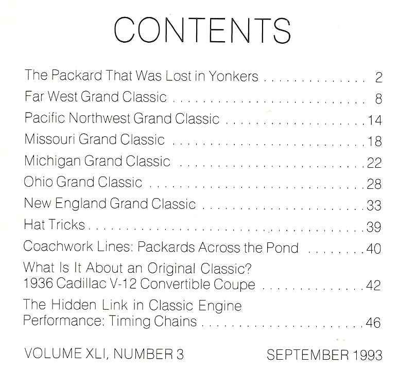 Reviews THE CLASSIC CAR 1993 SEPT - '38 12 PACKARD CONV COUPE, '36 ADILLAC V12 CONV