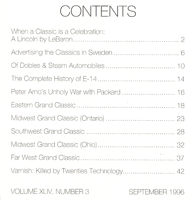 Reviews THE CLASSIC CAR 1996 SEPT - '31 LINCOLN LEBARON, DOBLE E-14 HARDTOP PHAETON*