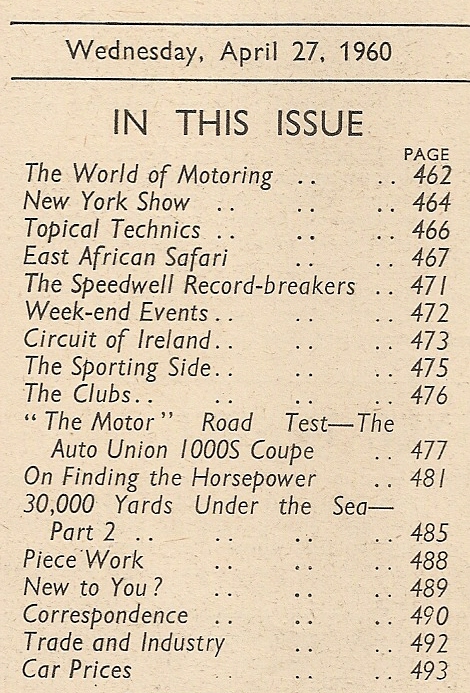 Reviews THE MOTOR 1960 APR 27 - MORRIS INOR 1000, AUTO UNION 1000S COUPE, SPEEDWELL