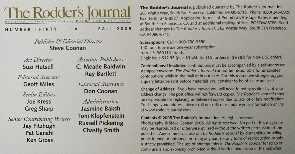 Reviews THE RODDER'S JOURNAL NO. 30 2005 FALL - '60 T-BIRD, SADD, TEAGUE, BENTLEY