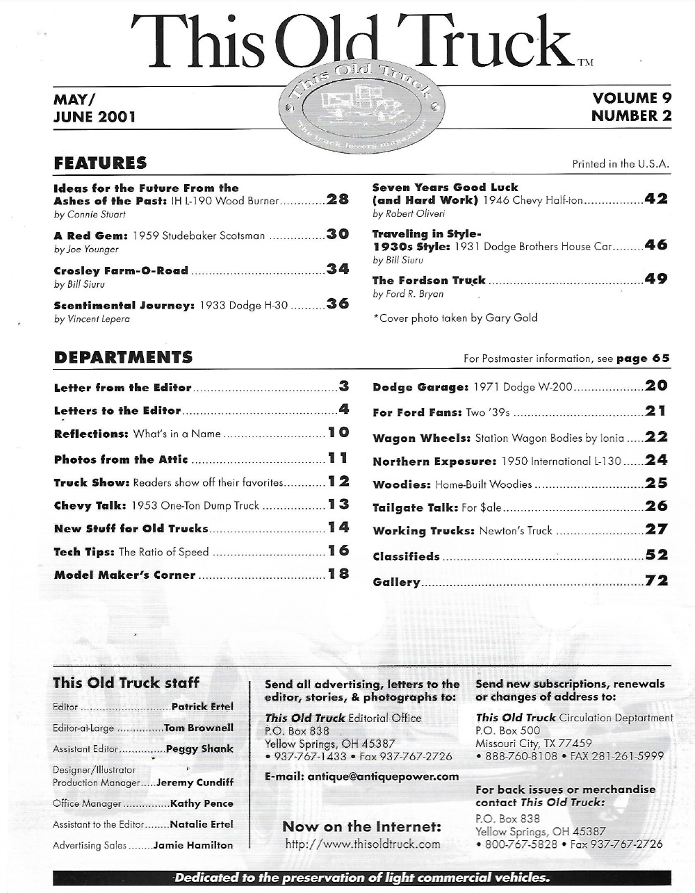 Reviews THIS OLD TRUCK 2001 MAY - '33 DODGE H-30, '59 STUDE SCOTSMAN, '31 DODGE BROS