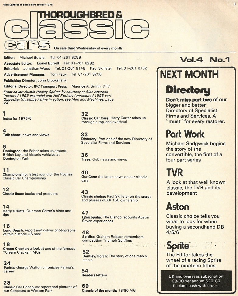 THOROUGHBRED & CLASSIC CARS 1976 OCT - CREAM CRACKER,XK1500, AUSTIN 7,SPITFIRES