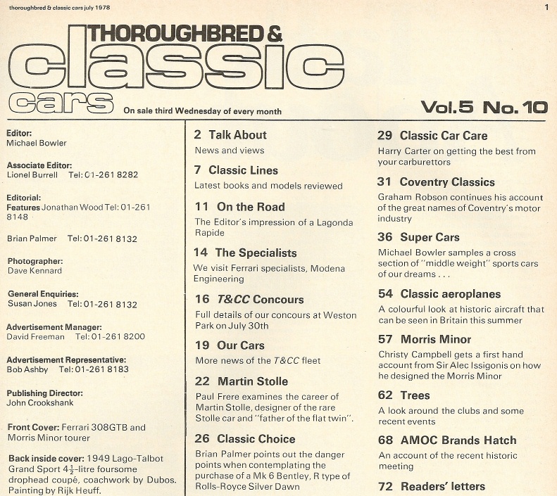 THOROUGHBRED & CLASSIC CARS 1978 JULY - SUPERCARS DUEL, LAGONDA RAPIDE, MORRIS