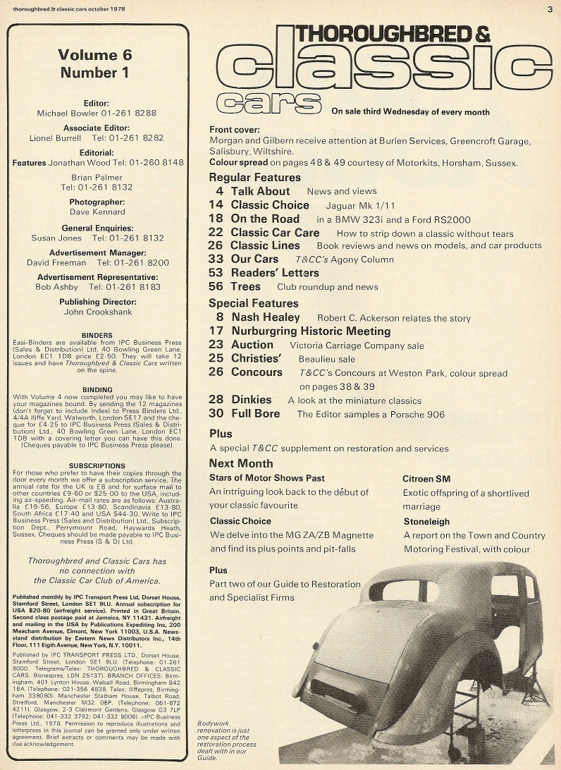 THOROUGHBRED & CLASSIC CARS 1978 OCT - PORSCHE 906, Mk 1/11, FORD RS2000