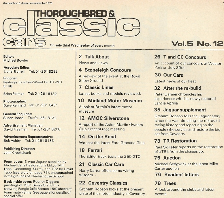 THOROUGHBRED & CLASSIC CARS 1978 SEPT - JAG Spcl SUPPLIMENT, 250 G, TR2 RESTO