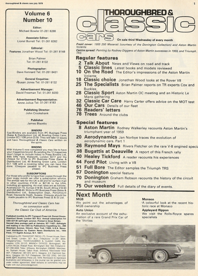 THOROUGHBRED & CLASSIC CARS 1979 JULY - TRS, R MAYS Spcl