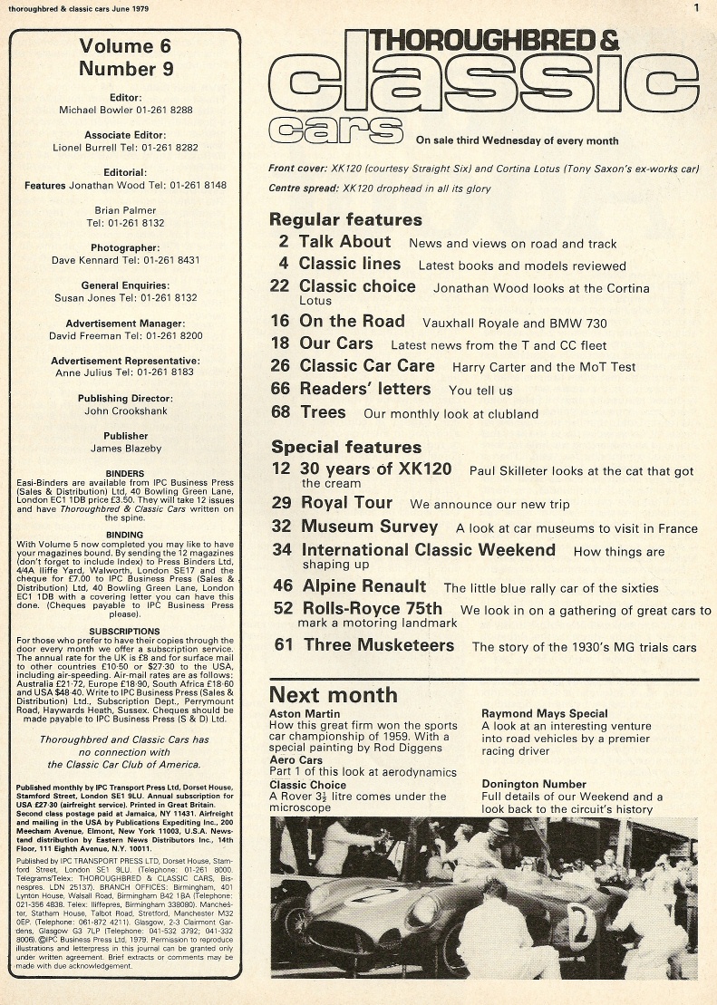 THOROUGHBRED & CLASSIC CARS 1979 JUNE - XK120,ALPINE A, ROYALE,CORTINA, BMW 730