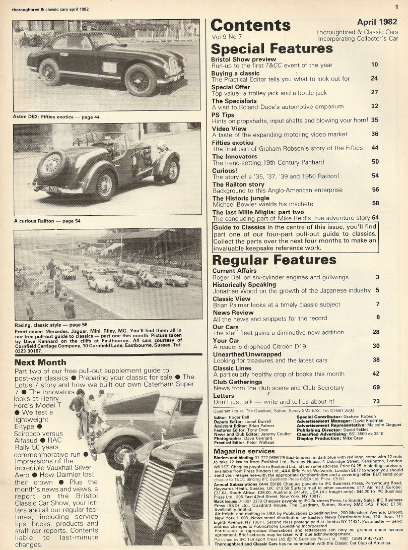 Reviews THOROUGHBRED & CLASSIC CARS 1982 APR - DB2,RAILTONs,D19