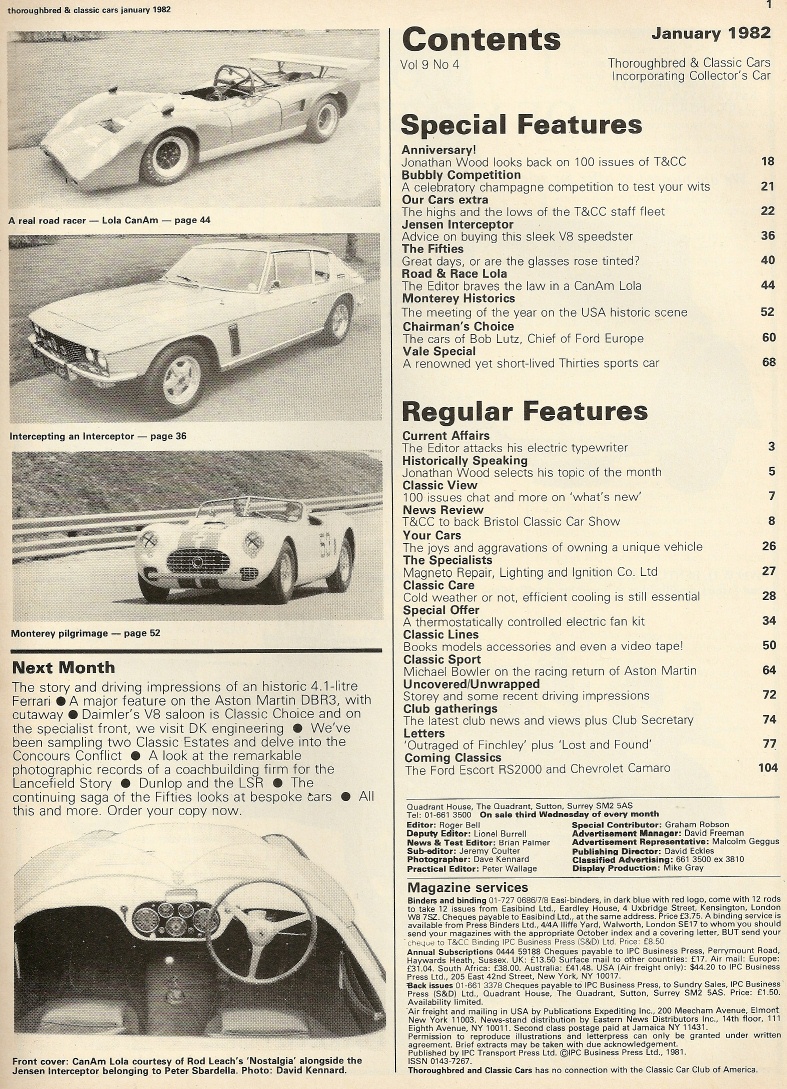 Reviews THOROUGHBRED & CLASSIC CARS 1982 JAN - LOLA CAN-AM, LUTZ