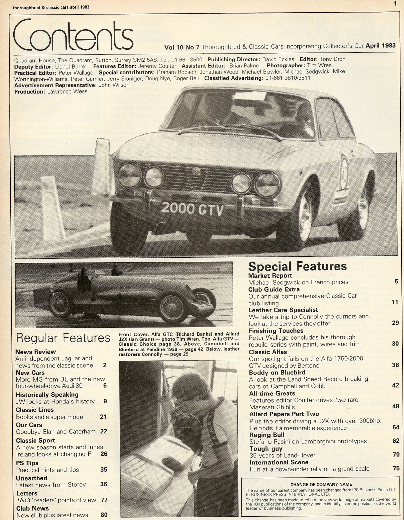 THOROUGHBRED & CLASSIC CARS 1983 APR - J2X TEST, ALFA GTV