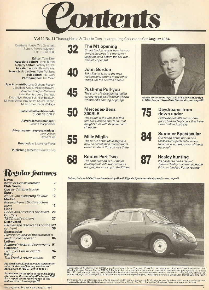 THOROUGHBRED & CLASSIC CARS 1984 AUG - 300SLR, ABARTH