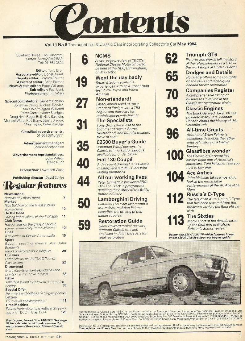 Reviews THOROUGHBRED & CLASSIC CARS 1984 MAY - VETTE, RACING ACE