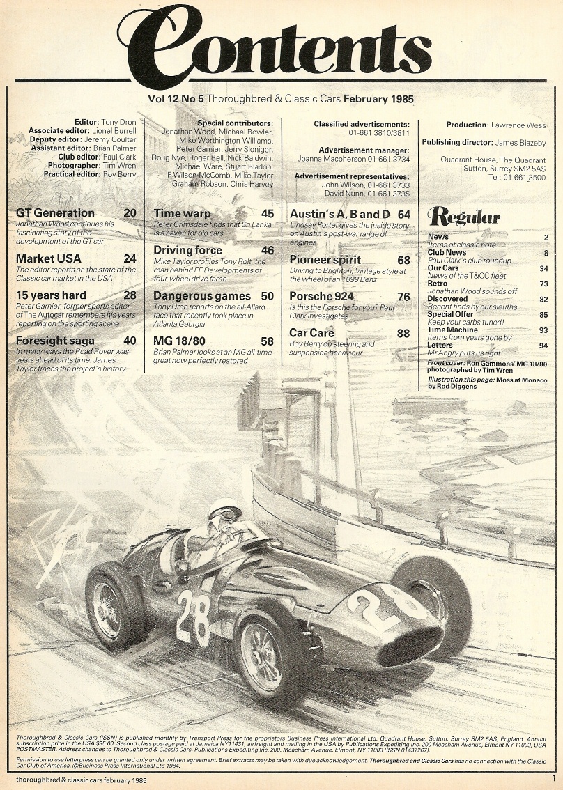 THOROUGHBRED & CLASSIC CARS 1985 FEB - 924, MG18/80