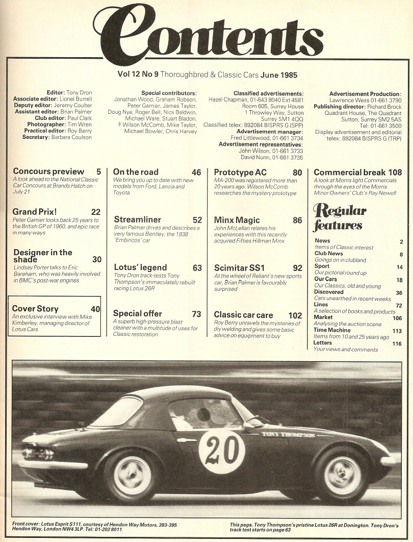 Reviews THOROUGHBRED & CLASSIC CARS 1985 JUNE - MA-200, 26R, SS1