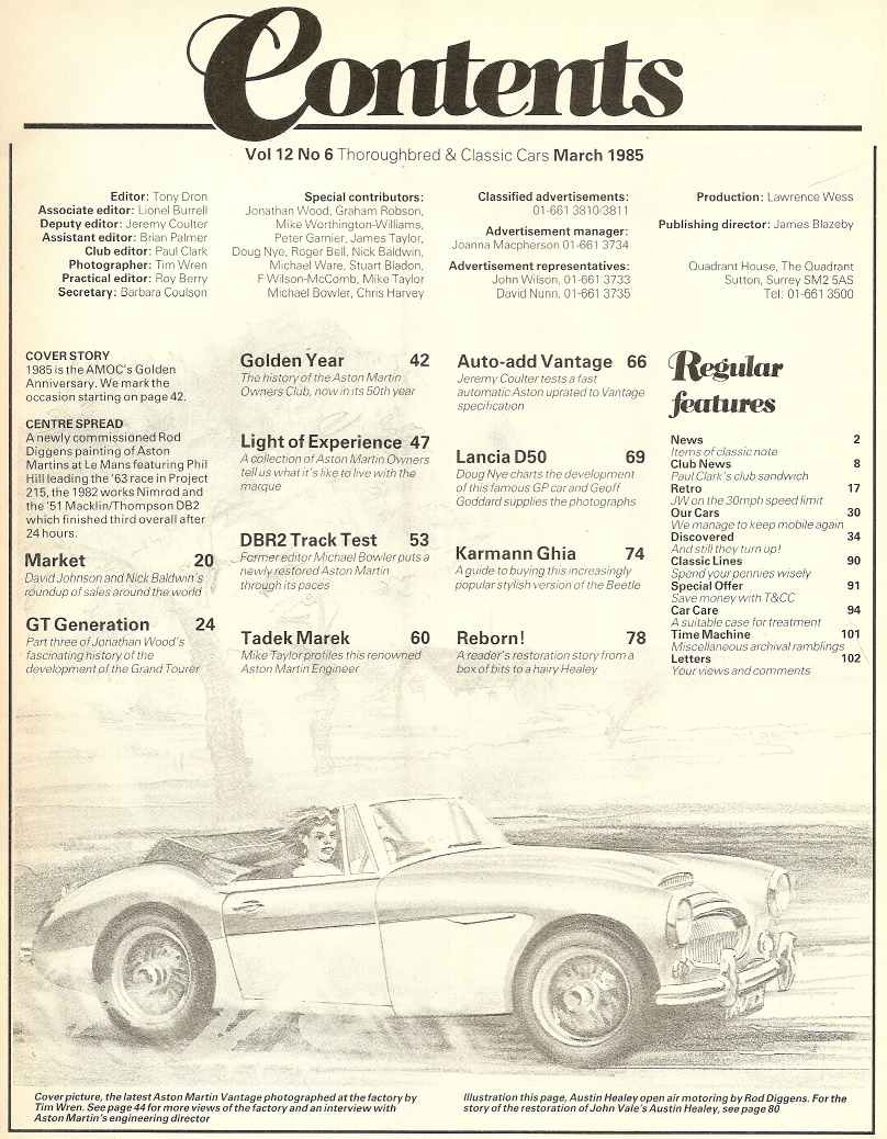 Reviews THOROUGHBRED & CLASSIC CARS 1985 MAR - ASTONs, VW GHIA