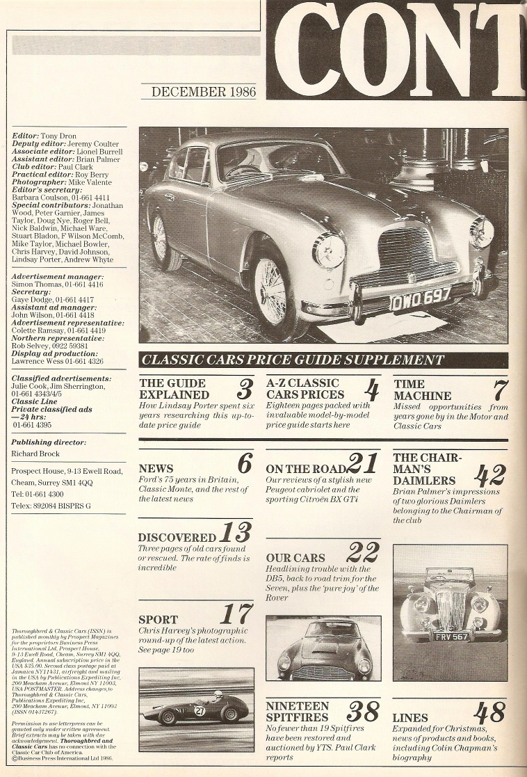 THOROUGHBRED & CLASSIC CARS 1986 DEC - LISTER, NEW XJ6Plus Classic Car Price Supplement.![]() ![]() ![]() ![]() These are super-sized magazines. |