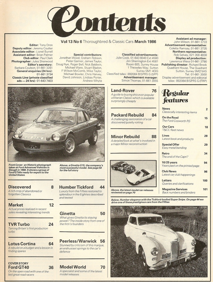 Reviews THOROUGHBRED & CLASSIC CARS 1986 MAR - GT40 TEST, G15