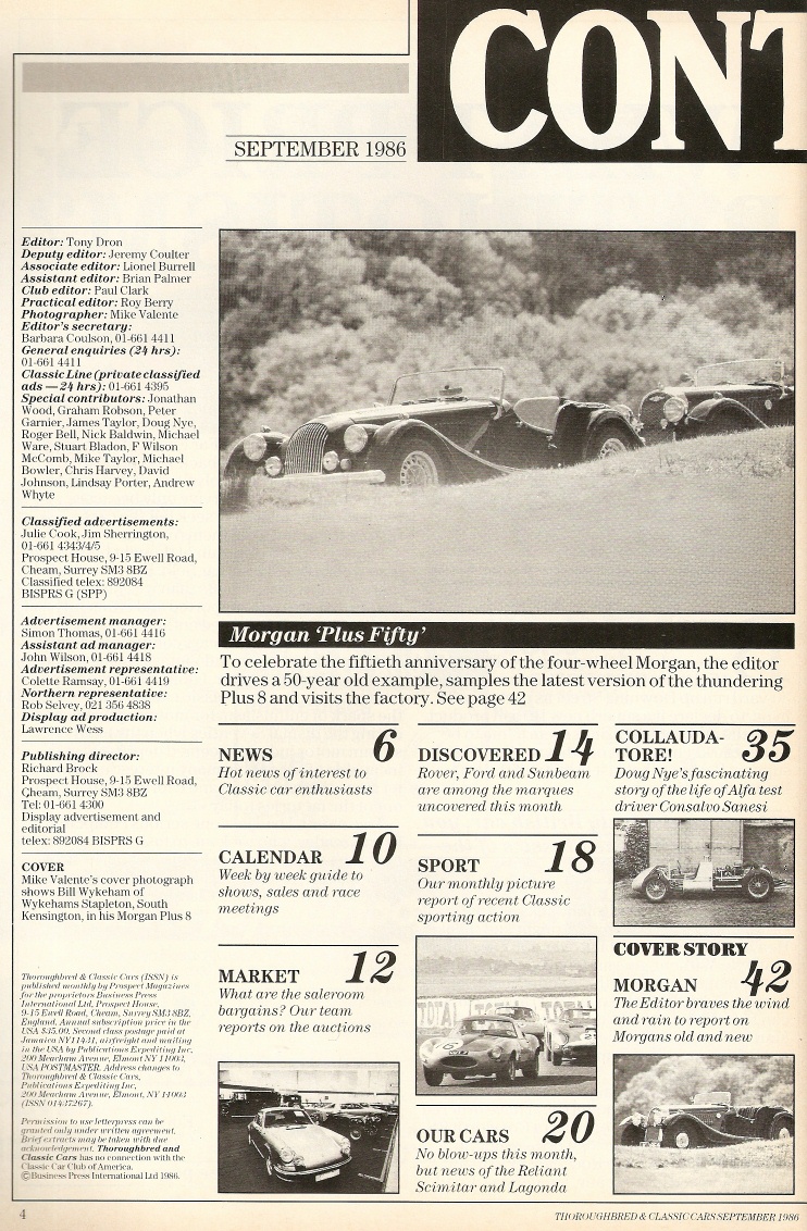Reviews THOROUGHBRED & CLASSIC CARS 1986 SEPT - MORGANS, 356&959