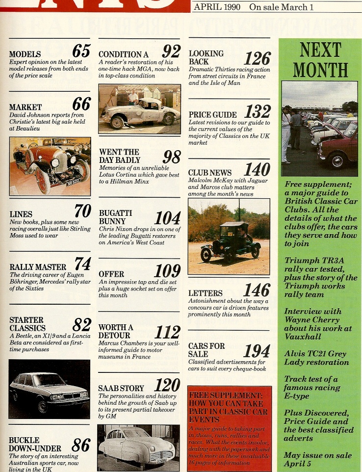 Reviews THOROUGHBRED & CLASSIC CARS 1990 APR - SAAB STORY, MGA