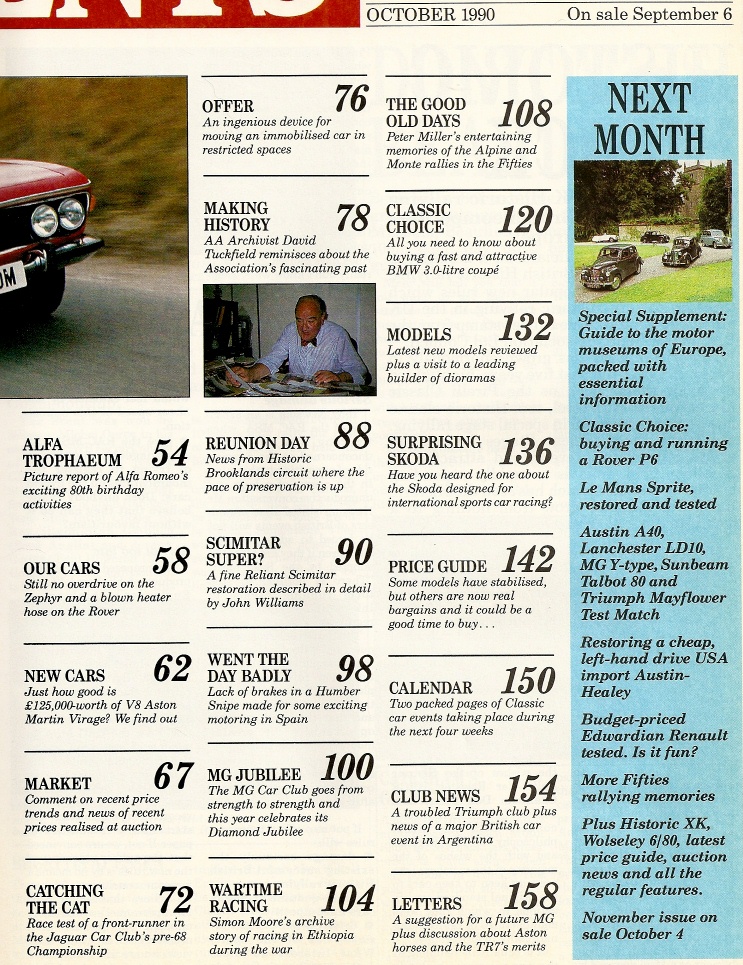 THOROUGHBRED & CLASSIC CARS 1990 OCT - SCIMITAR, 3.0 CSi