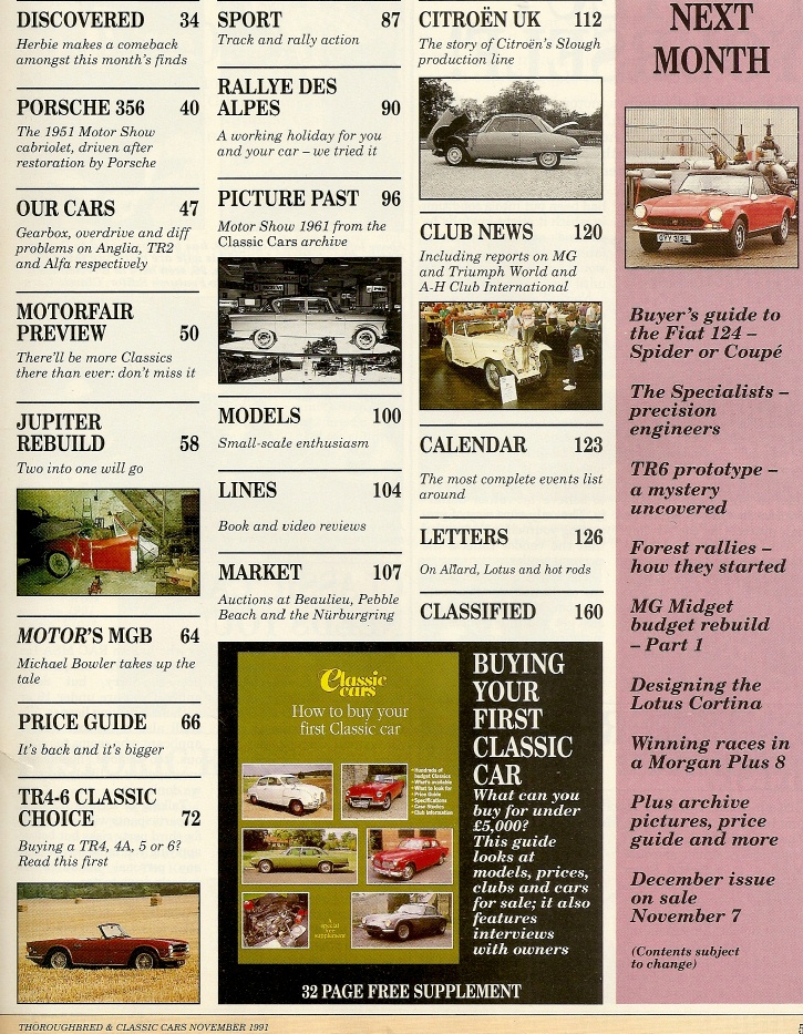 Reviews THOROUGHBRED & CLASSIC CARS 1991 NOV - 365, TR4/5/6