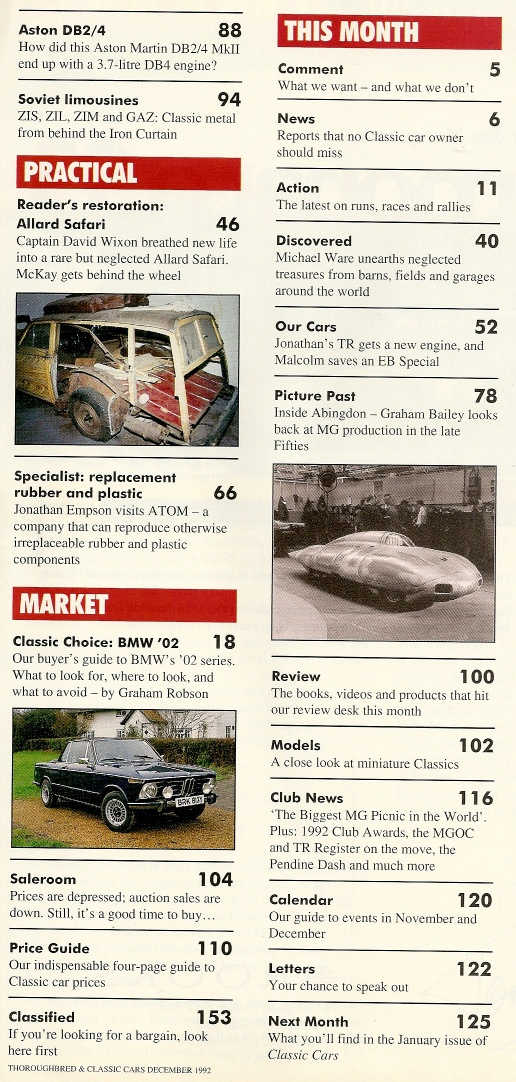 THOROUGHBRED & CLASSIC CARS 1992 DEC - 250GT, A40, BMWs