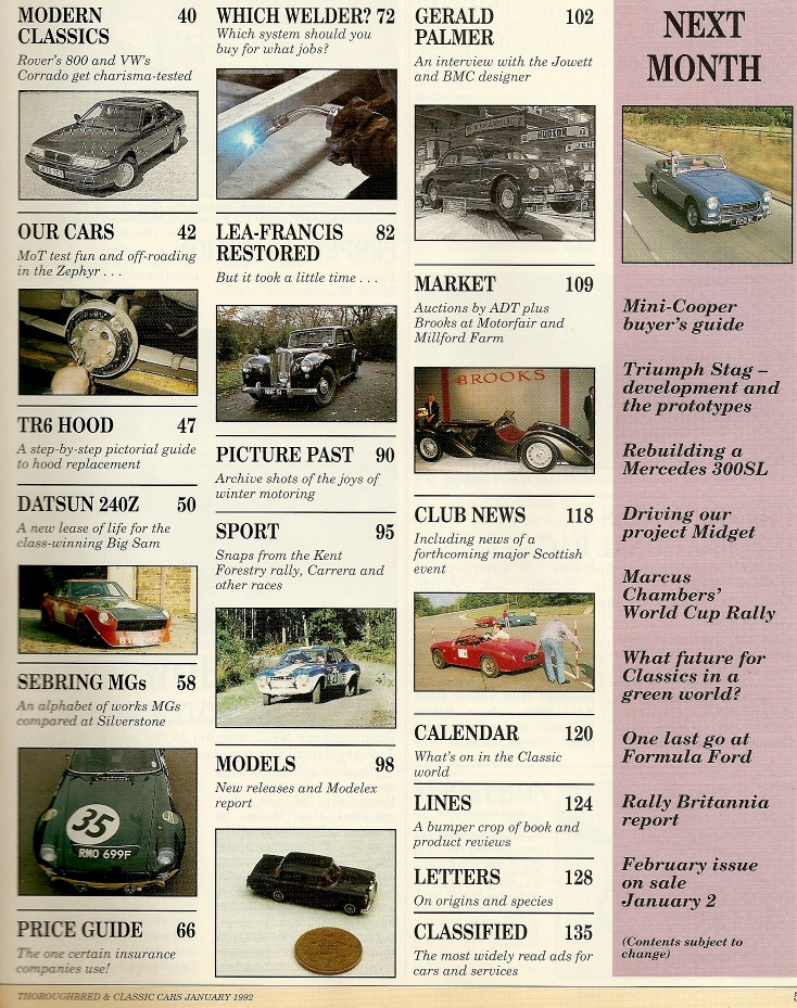 Reviews THOROUGHBRED & CLASSIC CARS 1992 JAN - MG & 240Z RACERS