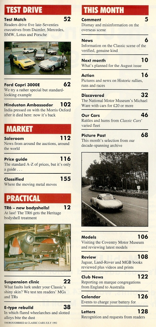 Reviews THOROUGHBRED & CLASSIC CARS 1992 JULY - CAPRI 3000E, TR6