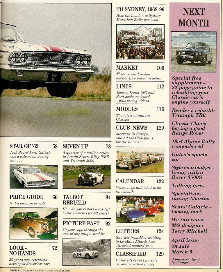 THOROUGHBRED & CLASSIC CARS 1992 MAR - 7-L FORD, C-V8