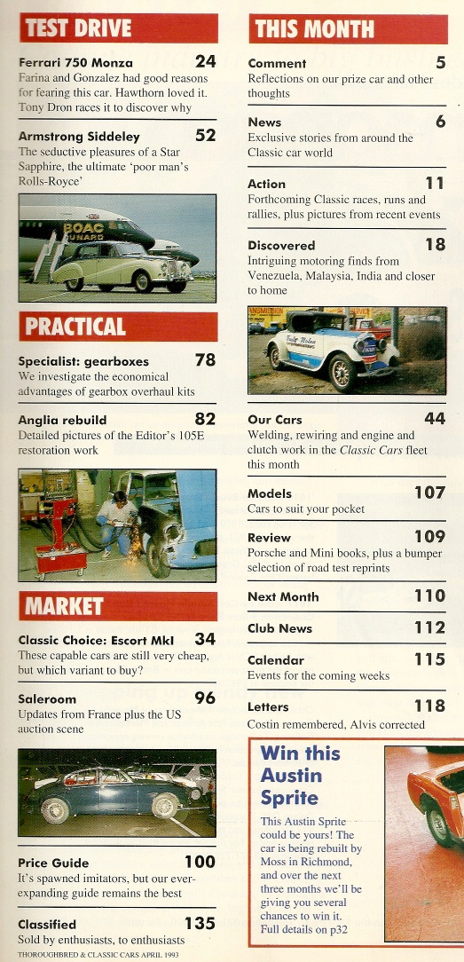 THOROUGHBRED & CLASSIC CARS 1993 APR - ESCORT, ANGLIA