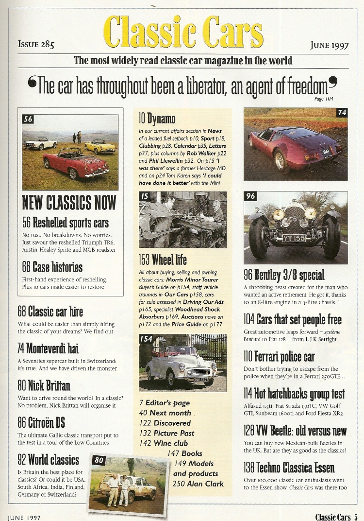 Reviews THOROUGHBRED & CLASSIC CARS 1997 JUNE - MONTEVERDI HAI, NEW TR6, MGB & SPRINTE