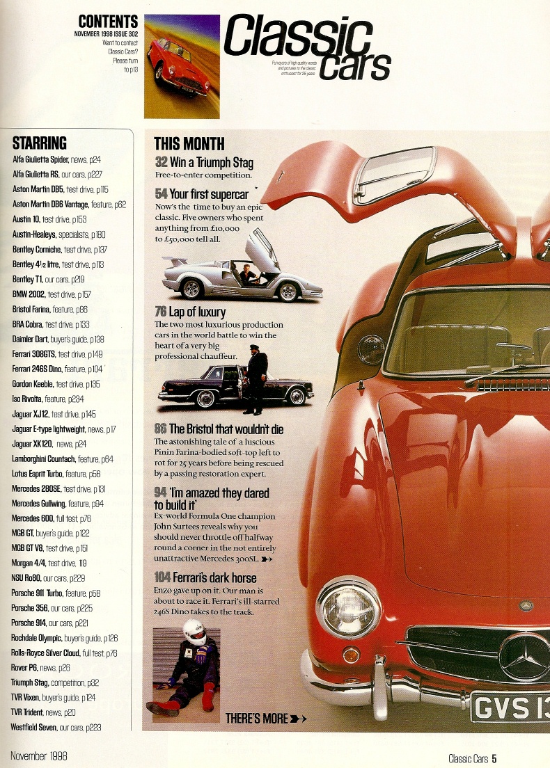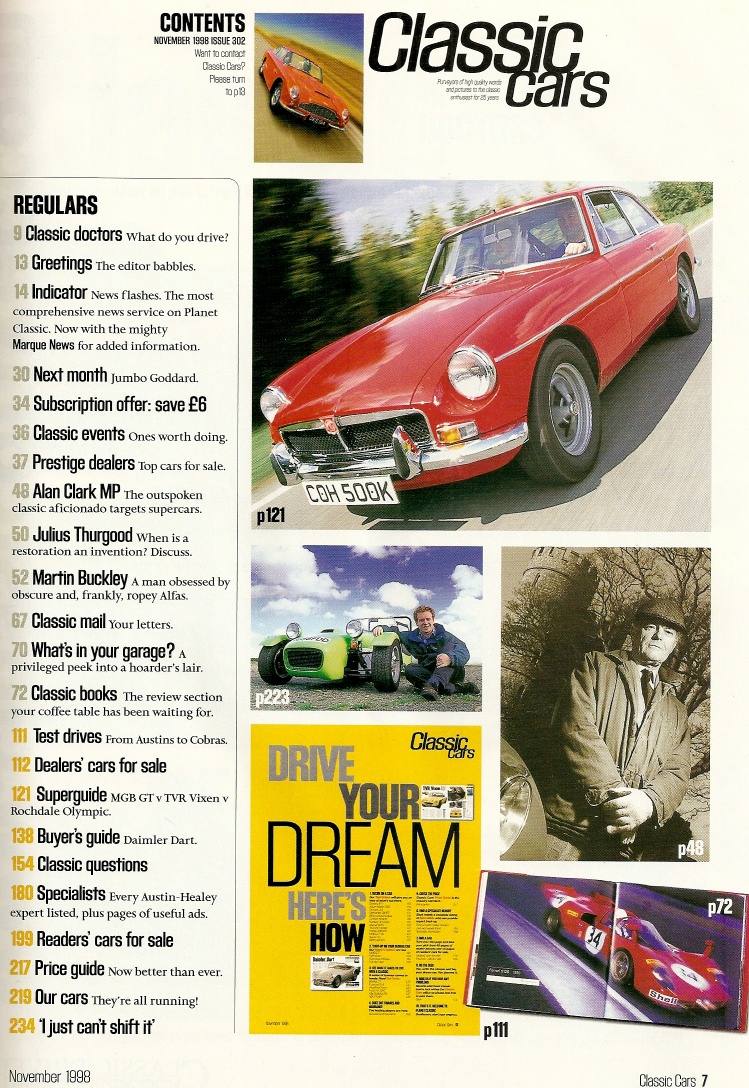 THOROUGHBRED & CLASSIC CARS 1998 NOV - MGB GT vs VIXEN vs OLYMPIC, DART SP250