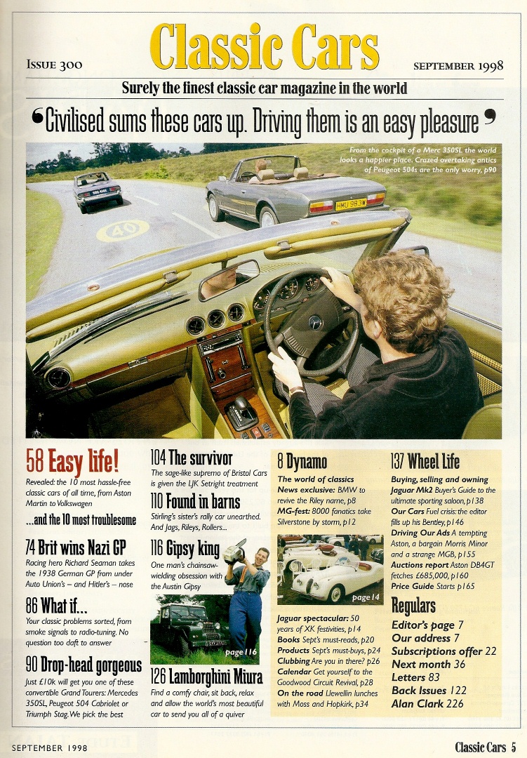 THOROUGHBRED & CLASSIC CARS 1998 SEPT - MIURA, AUSTIN GIPSY, 38 GERMAN GP
