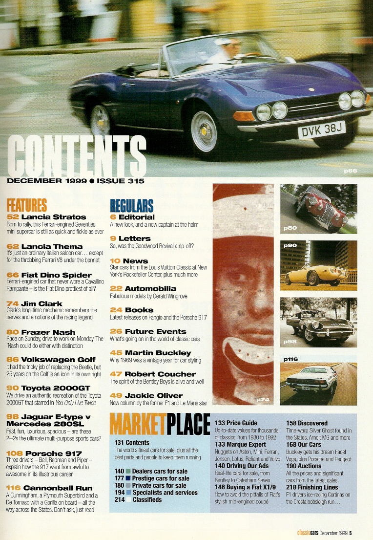 Reviews THOROUGHBRED & CLASSIC CARS 1999 DEC - STARTOS, PORSCHE 917 Spcl, CANNONBALL