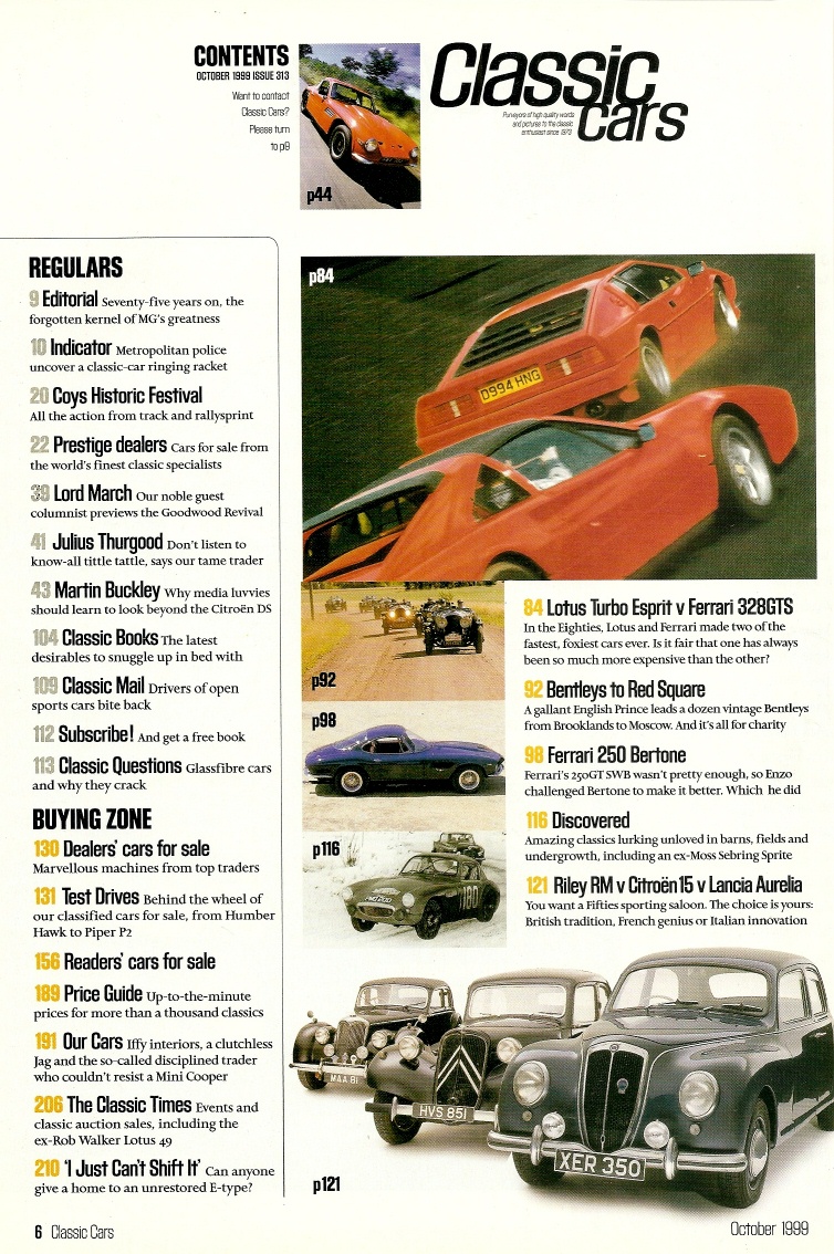 THOROUGHBRED & CLASSIC CARS 1999 OCT - AUTO UNION STREAMLINER, MG COMP RACERS