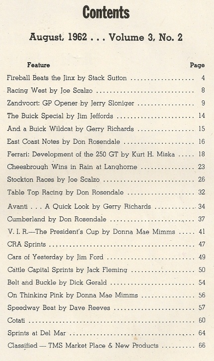 Reviews TODAY'S MOTOR SPORTS 1962 AUG - V3 N2 - BUICK SPECIAL, FERRARI, AVANTI,FIREBALL
