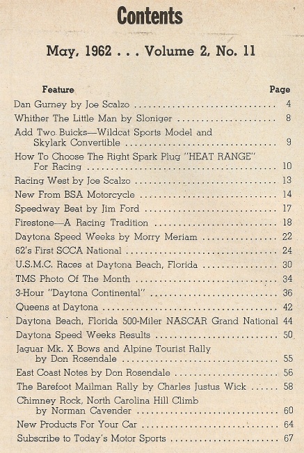 Reviews TODAY'S MOTOR SPORTS 1962 MAY - V2 N11 - GURNEY, WILDCAT, SKYLARK, DAYTONA