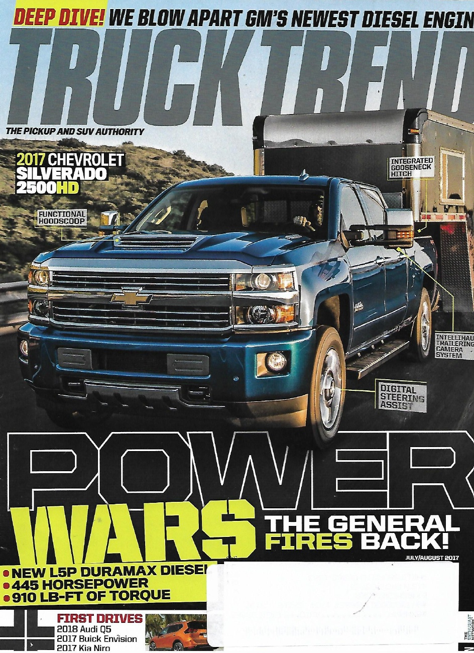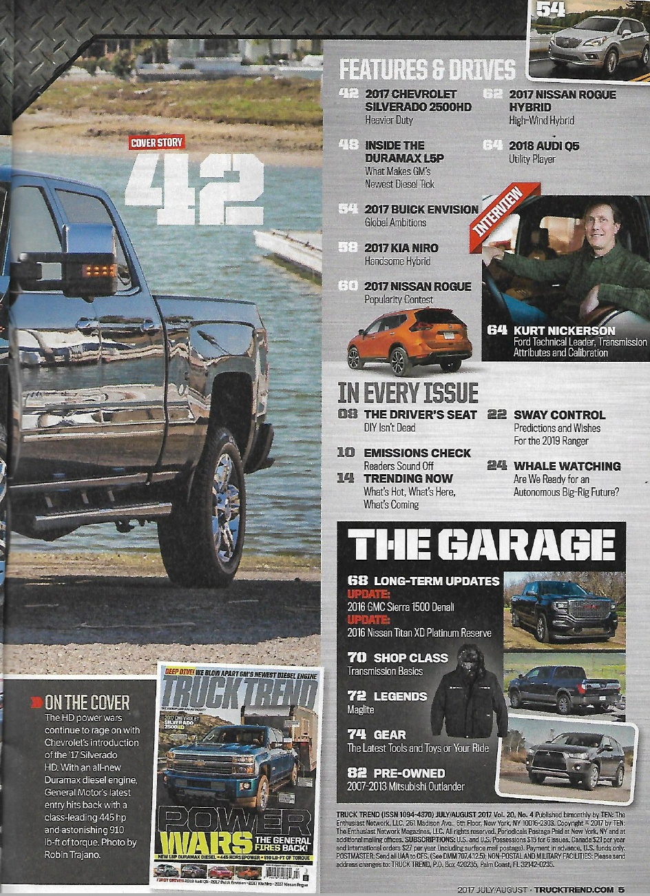 Reviews TRUCK TREND 2017 JULY - L5P DURAMAX DIESEL,'18 AUDI Q5,BUICK ENVISION, KIA NIRO