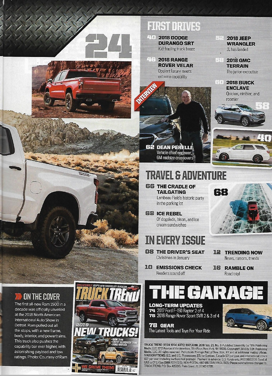 Reviews TRUCK TREND 2018 MAY - NEW TRUCKS: RAM 1500, SILVERADO 1500, RANGER,DURANGO SRT