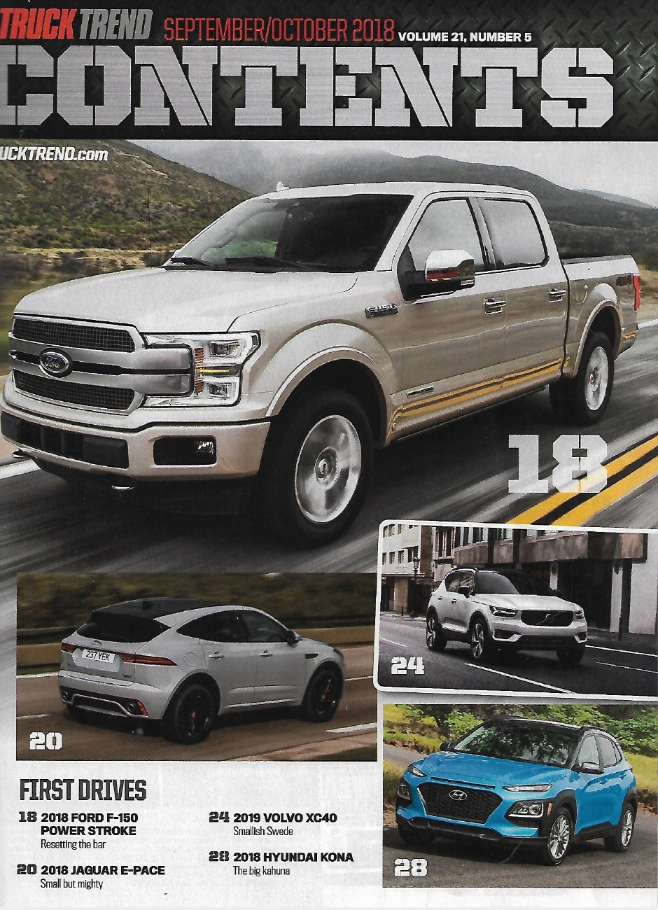 Reviews TRUCK TREND 2018 SEPT - VOLVO XC40, HYUNDAI KONA, JAGUAR E-PACE, '18 FORD F-150