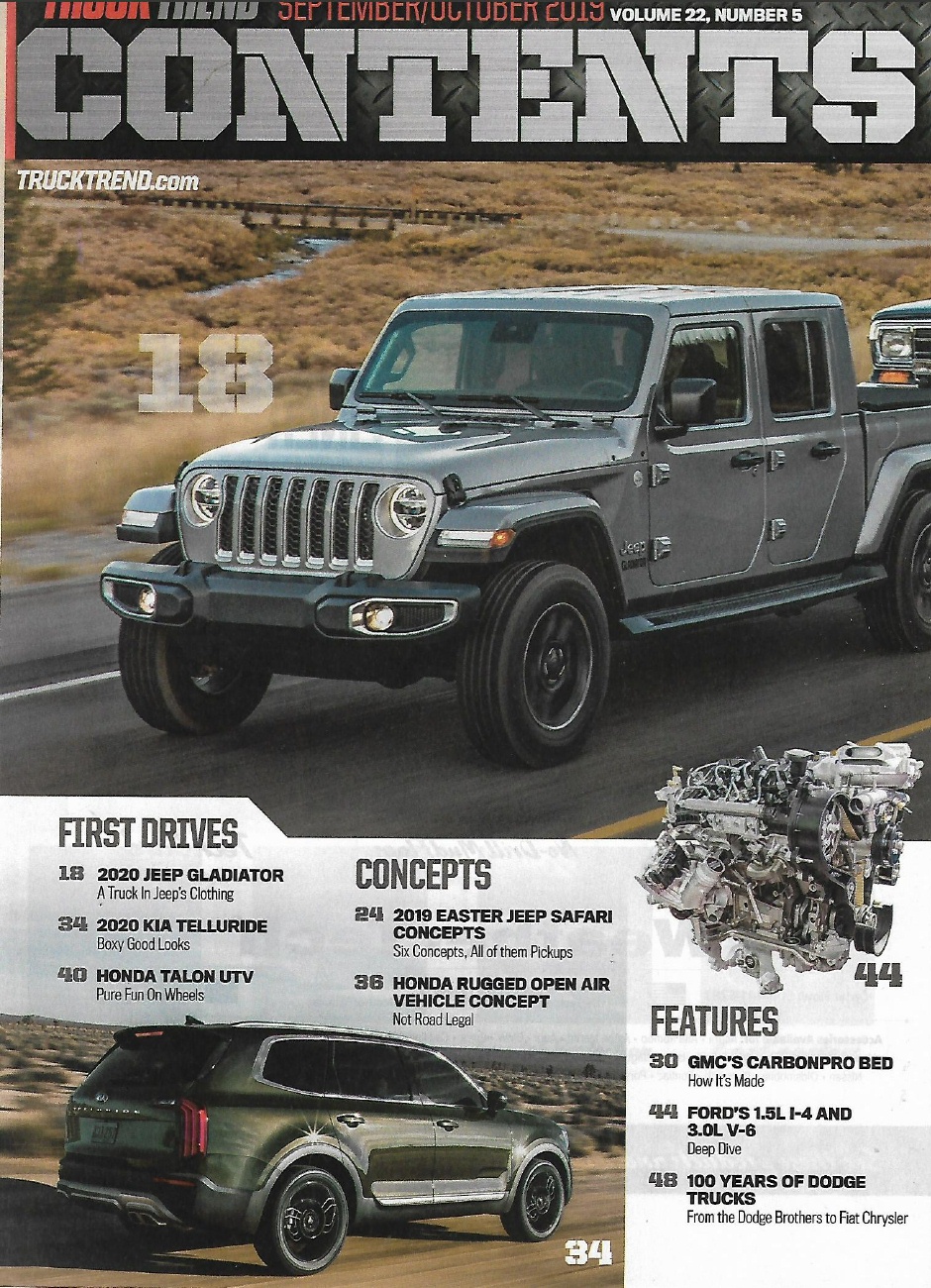 Reviews TRUCK TREND 2019 SEPT - GLADIATOR, '20 KIA TELLURIDE, HONDA TALON UTV