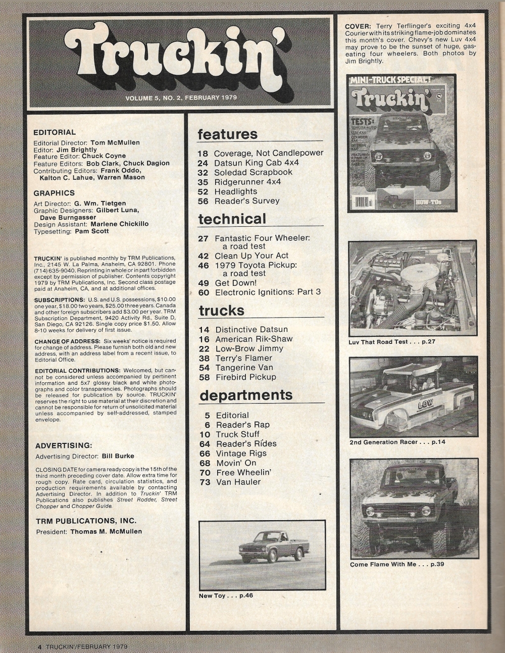 Reviews TRUCKIN' 1979 FEB - MINI TRUCKS, LUV/COURIER/DATSUN 4X4'S