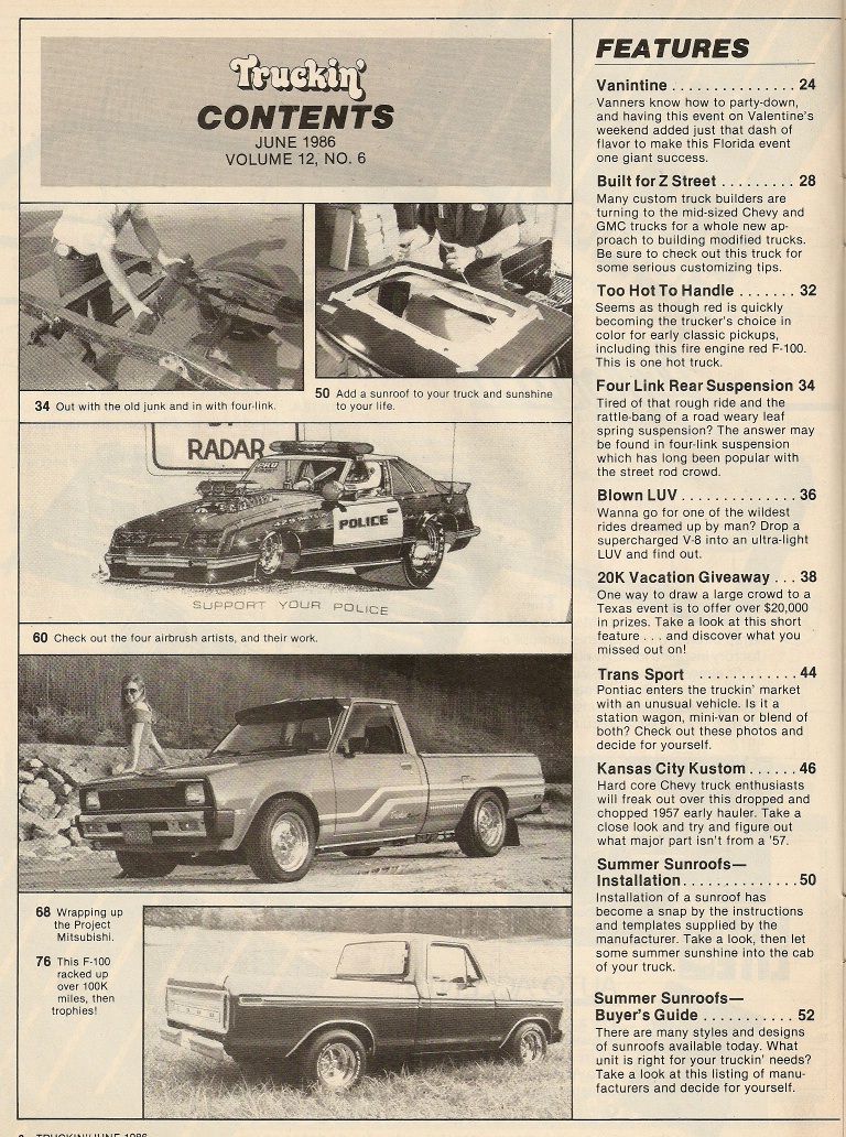 Reviews TRUCKIN' 1986 JUNE - SUN ROOF, 4 BAR SWAP, FLORIDA VANS*