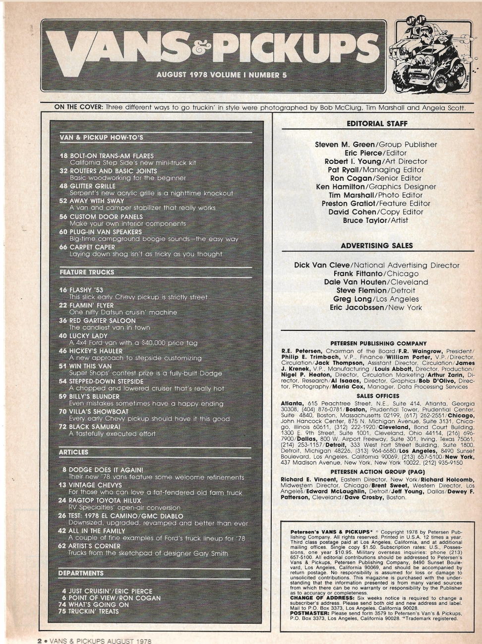 Reviews VANS & PICKUPS 1978 AUG - CARPET, TRANS-AM FLARES, BOLT ON GRILLE, WOOD WORKING