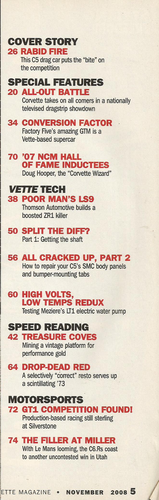Reviews VETTE 2008 NOV - PINKS, FACTORY 5 GTM, LS9 TWIN, COOL 58, HOT 73