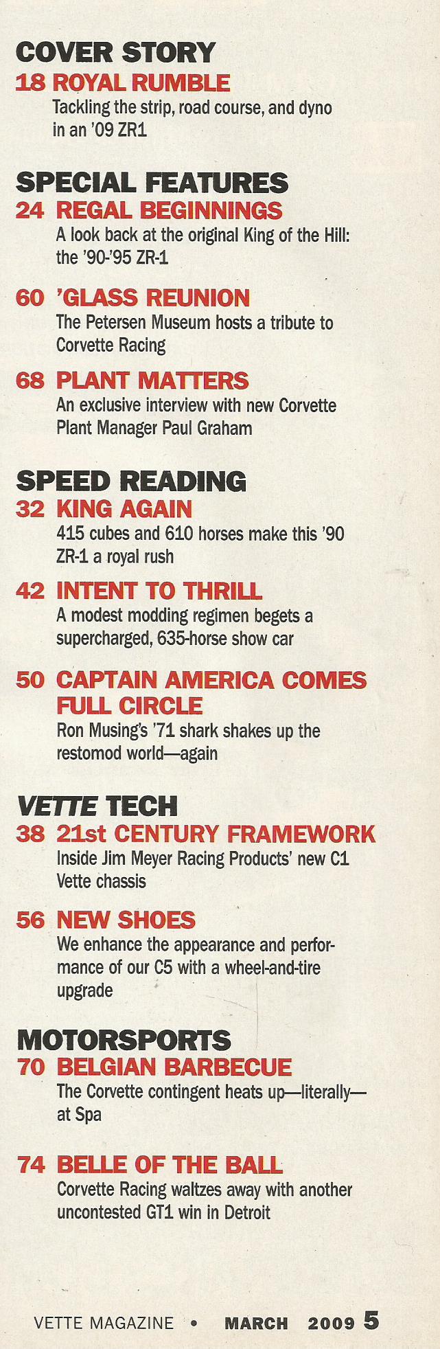 Reviews VETTE 2009 MAR - ZR1 SPECIAL, C1 CHASSIS, BLOWN C5, Capt AMERICA C3