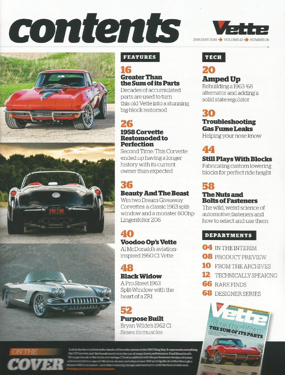 VETTE 2018 JAN - LOWER A C1, COOL 60, ALTERNATOR REBUILD, SICK 58