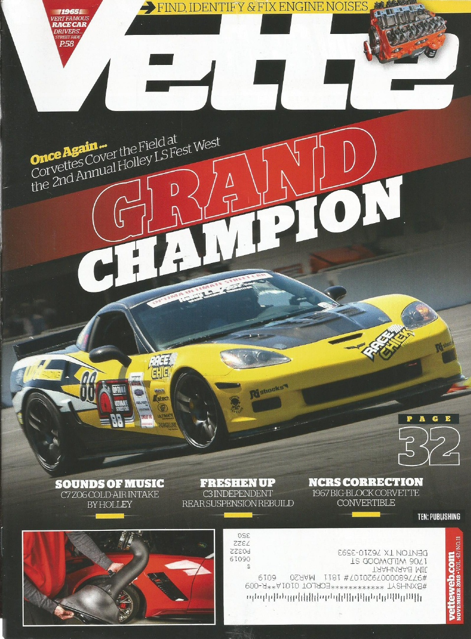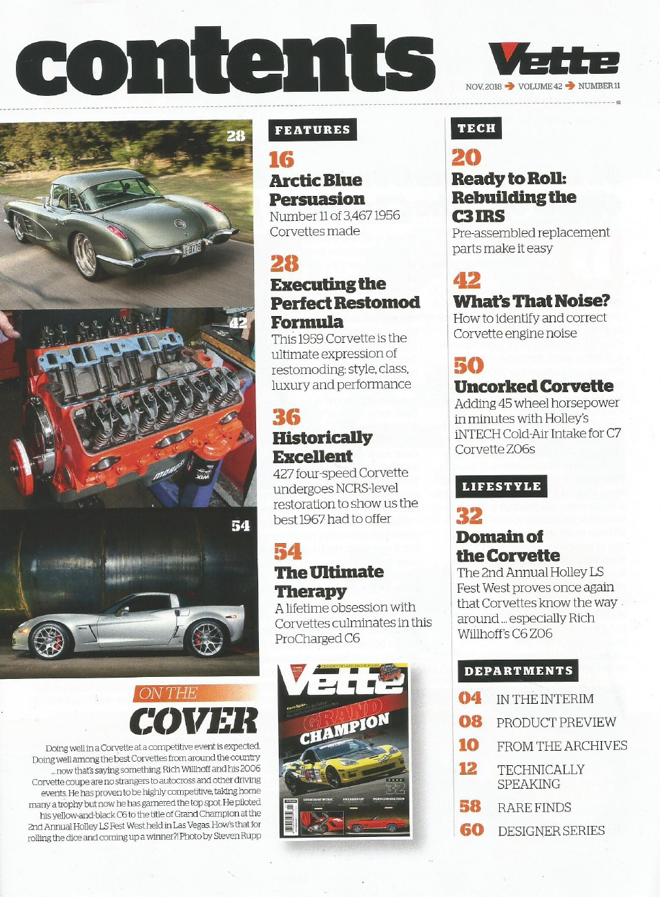 VETTE 2018 NOV - C7 Z06 INTAKE, BETTY SKELTONs 65, RARE 56, C3 IRS